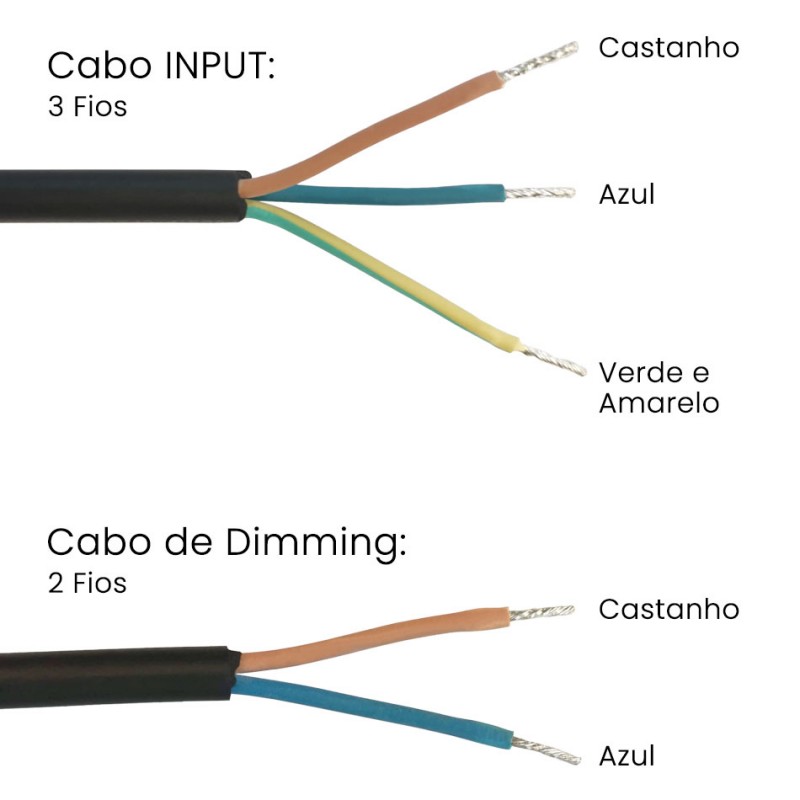 Cabo Input: 3 Fios (azul/castanho/verde+amarelo)